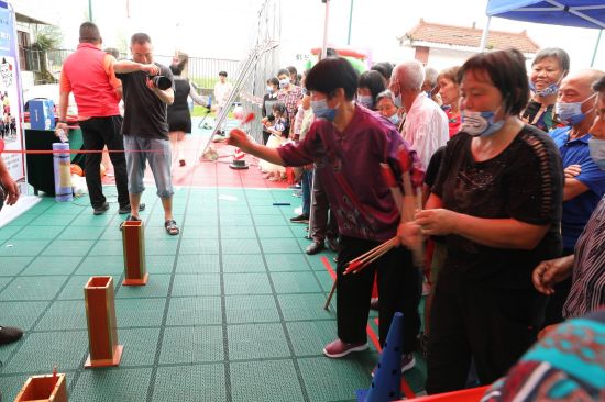 线下活动包括体彩展示区、全民健身体验区和游戏互动区三大板块。体彩展示区通过倡导责任彩票、体彩玩法介绍、乡村振兴成果展示等资料,让村民进一步认识体彩,了解体彩在乡村振兴工作中发挥的重要作用。全民健身体验区设置有踢毽子、哑铃等群众体育项目,让村民通过现场参与体育锻炼,提升健康意识,推动全民健身战略实施。游戏互动区共有桌上足球、投篮、投壶、滚铁环、飞镖等趣味体验活动,并为参与者准备了丰厚礼品。活动吸引了200余名村民到场参与,大家热情高涨,积极参与各项活动,充分感受体育魅力,引领袁家庄村的运动热潮!