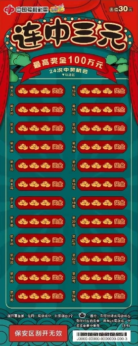 该款彩票面值30元,头奖100万元。