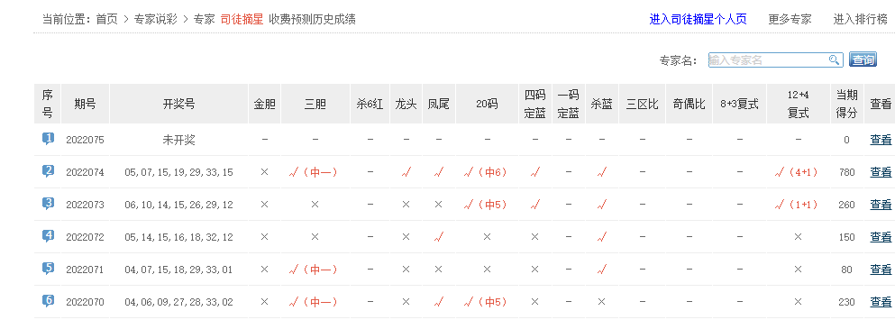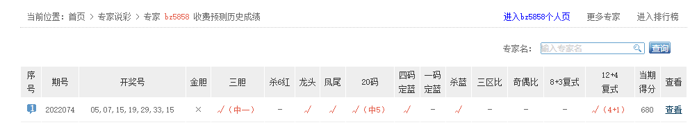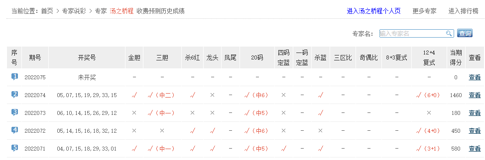 汤之桥程12+4命中6红;天道笔、空万里、西土瓦等专家大底命中6红。