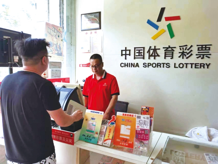 黄书忠(右)为购彩者打印彩票