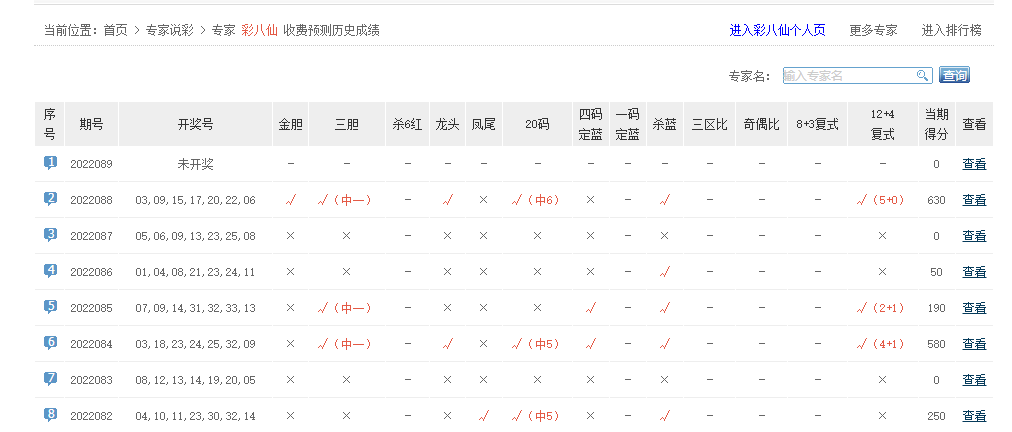 彩八仙、两彩王、千钧一码等专家大底命中6红。