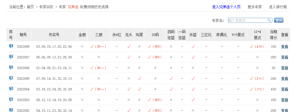 兄弟连、非常零距离、期期精彩、云彩霞、hjy1976、彩票人参、啪啪响、周晓红运、大联盟、锐风看彩、领头羊、zsl1688等专家命中5红。