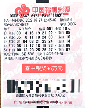 7月28日晚双色球第2022086期开奖,阳江市彩民袁先生(化名)以机选面值10元5注的彩票中得一注二等奖,赢得奖金36.6万元。