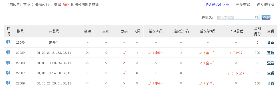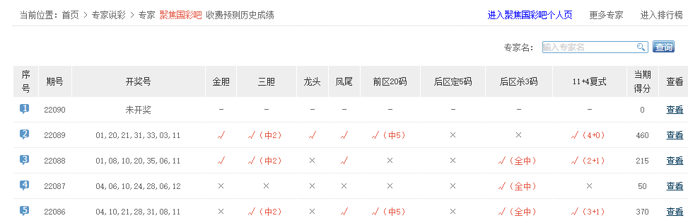 半瓶子11+4命中5+1;用之于民、中过五百万、九宫算法、第一彩神、AAA耀阳、qinyour888等专家大底命中5+1。