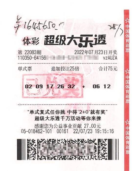 中奖者说,他平时经常购彩,这注中奖号码已守号近半年,“那天买彩票时,凭感觉追加投注25倍,平时很少这样。”中奖者说,没想到追加倍投的方式,让中奖金额超过了百万。