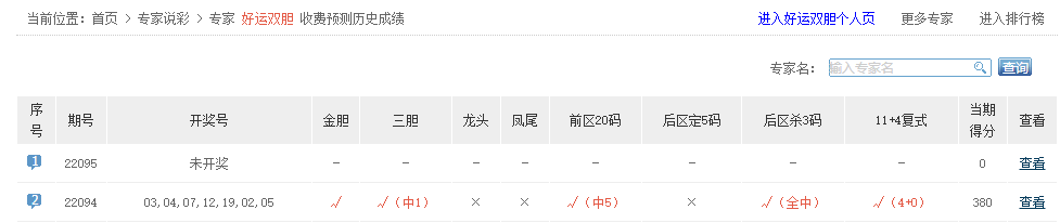 好运双胆、杨红老师命中5+0。