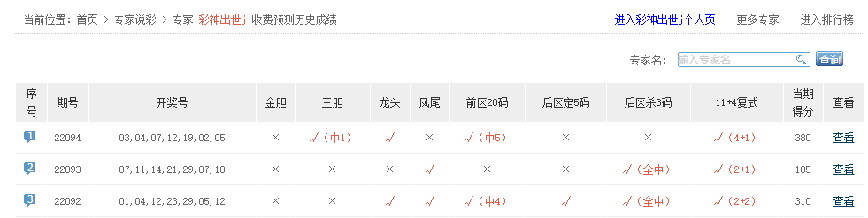 彩神出世j、老彩民了等专家大底命中5+1。