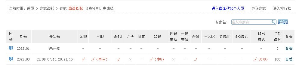 喜逢秋起、律妈看彩、雷达寻胆、正宗玄球、白玉汤、HeiTaoK、速成老手、七彩金鱼、瓦妮达我爱你、彩神之星、大地主玩彩、彩灵通、zgeng00001、奥特来了等专家命中5红。