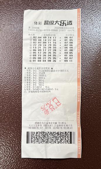 笔者在兑奖处见到了中奖者钱先生(化姓),他表示:“我是体育彩票的忠实粉丝,尤其是超级大乐透,可以说是每期都买,但是我买得不多,基本上都是15元或者30元,5注单式追加或者10注单式追加。”