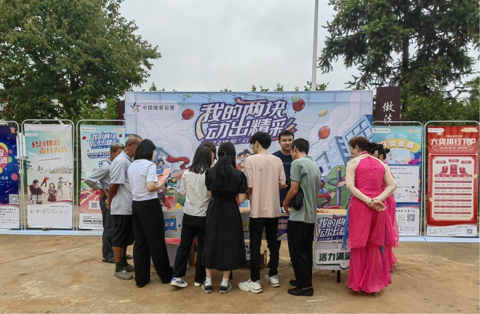 活动现场,江西省体彩中心摆放了体育彩票的公益公信等品牌宣传物料,让现场观众了解中国体育彩票对社会公共事业的积极贡献。