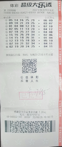 大乐透第22091期开奖,前区号码开出“02、11、20、22、34+04、12”,当期开出54注单注奖金为24万余元的基本投注二等奖。其中1注基本投注二等奖落在位于阳江市江城区玉沙关余小区B栋1号的4415015152体彩销售实体店,中奖彩票是一张投注额为60元的胆拖复式票。除了揽得1注基本投注二等奖外,这张彩票还中得1注三等奖、8注五等奖和七等奖、6注八等奖和九等奖,共收获25万余元奖金,为当地贡献税收4万余元。