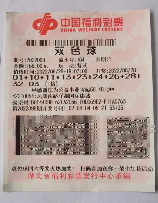 8月28日晚,福彩双色球游戏第2022099期开奖,鄂州购彩者洪老先生(化姓)凭借一张复式票,中得100949元大奖。