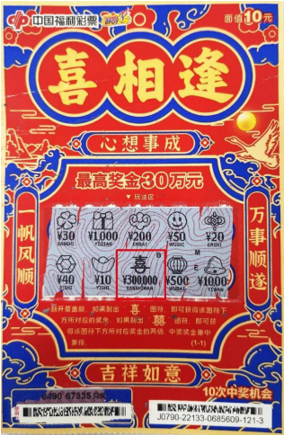 近日,福彩推出刮刮乐新票“喜相逢”,凭借喜庆的画面及美好的寓意一经上市便受到刮彩族的青睐。眼下,刮刮乐“喜相逢”1200万元的派奖活动正如火如荼地为彩友们奉上“奖上加奖”,在这场幸运与激情的碰撞中,淄博彩友一举拿下10元面值“喜相逢”的一等奖30万元,为热闹非凡的彩市再添一把火。