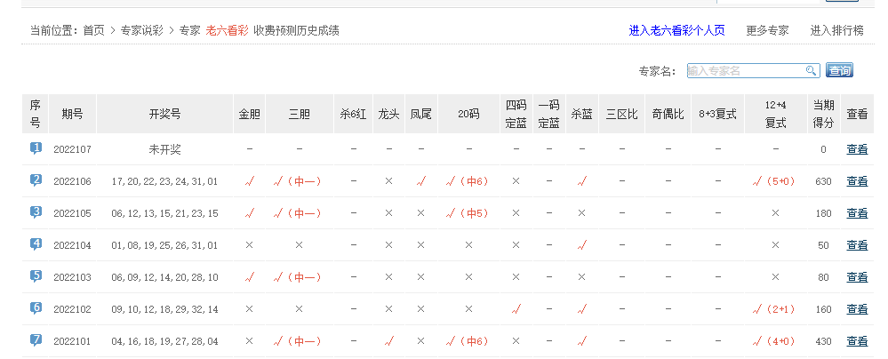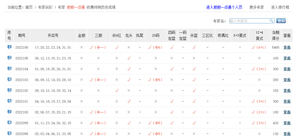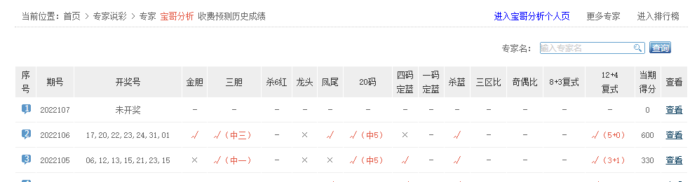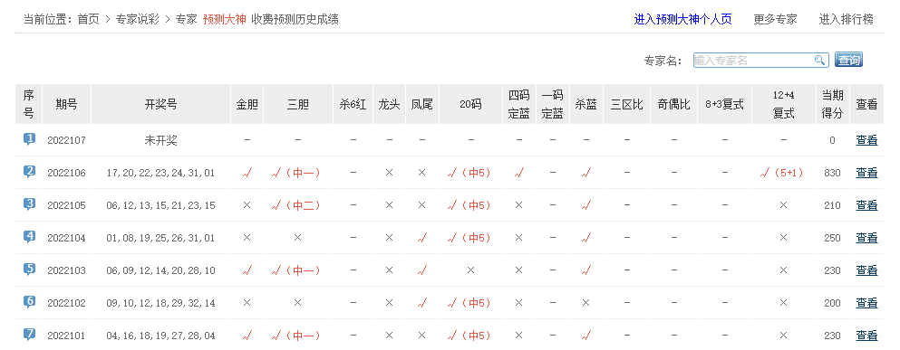 预测大神、爱神、妙常乐、赚多多、一路繁花相送等专家中5红1蓝。