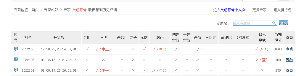 老六看彩、燕赵彩神、精准预测、剑雷、韩韩911等专家中6红。