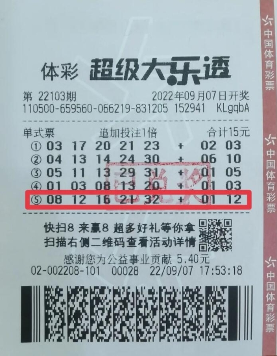 老谢坚持下来了,他期盼的收获也在9月7日晚开奖的第22103期大乐透中到来了。“当时不知道为什么,从来不在开奖当晚查开奖信息的我,突然有特别强的感觉,掏出手机在中国体彩网查了起来。”老谢表示,当所有奖号都对上那一刻,他脑子一下就空了,然后如释重负地瘫坐在沙发上,心里感谢着自己,感谢自己这十五年坚持下来了。