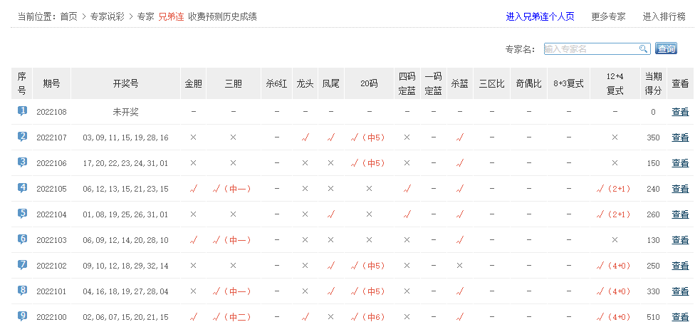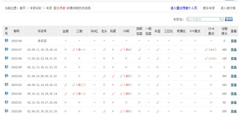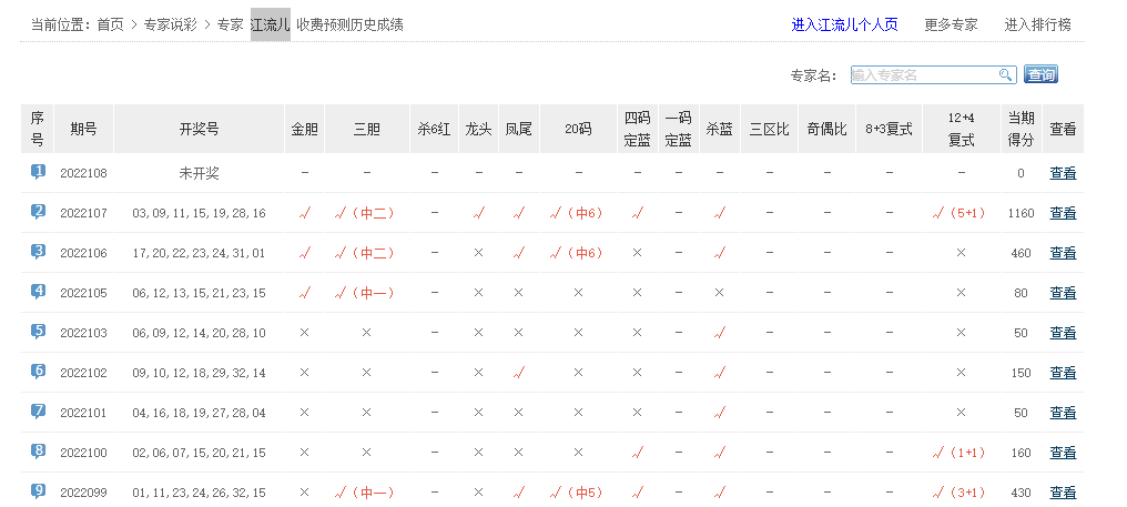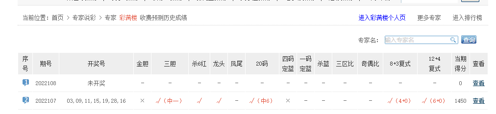 彩满楼、watsons、南宫烈火、中奖引领、红色彩票大佬、无空等专家中6红。