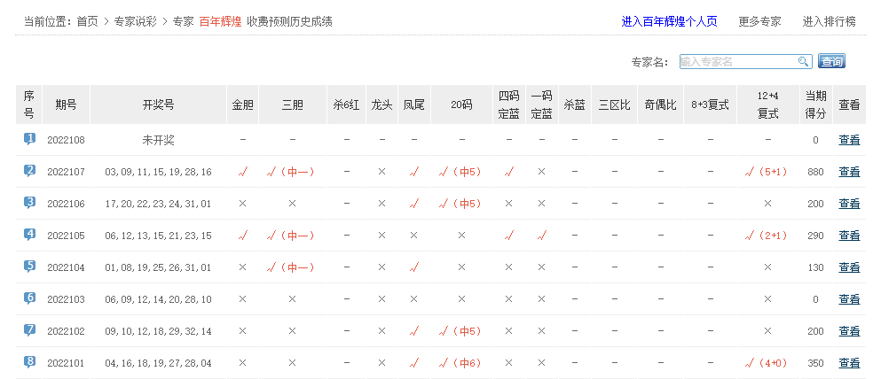 百年辉煌、非常零距离、点击王、易经荐胆、韩韩911等专家中5红1蓝。