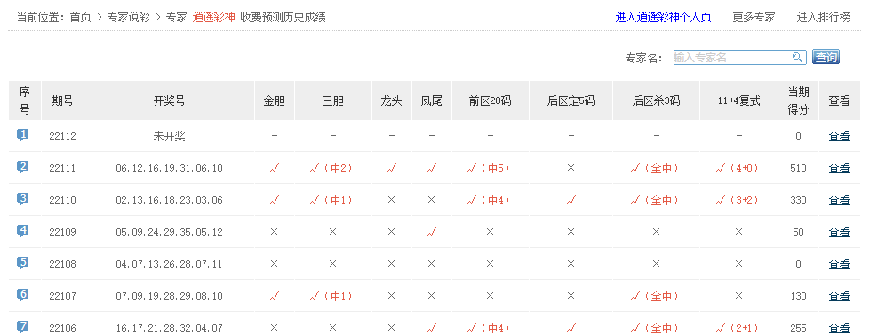 逍遥彩神、雷达寻胆、13055、白雪诺、陈刀仔等专家名字5+0。