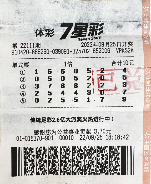 9月25日晚,体彩7星彩第22111期开奖,全国仅中出1注一等奖,来自于武汉的15370体彩销售点,中奖奖金共计500万元。该门店是一家与湖北体彩合作的阿里小微便利店。更令人意想不到的是,这家便利店去年也中出过一注500万元的7星彩一等奖(第21046期)。