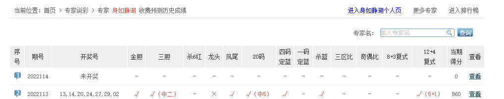 身如静湖、中奖神手、彩票天花板、大玩家66、飞花潇雪、铁血丹心中5红1蓝。