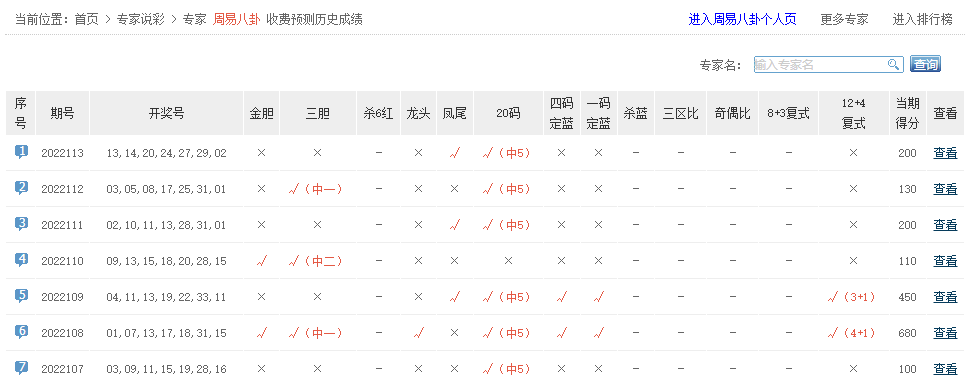 周易八卦、彩神通9、第一彩神、现代小青、数学家、易经荐胆、watsons、酒伴孤独、 wdg57859、韩韩911等专家命中5红。
