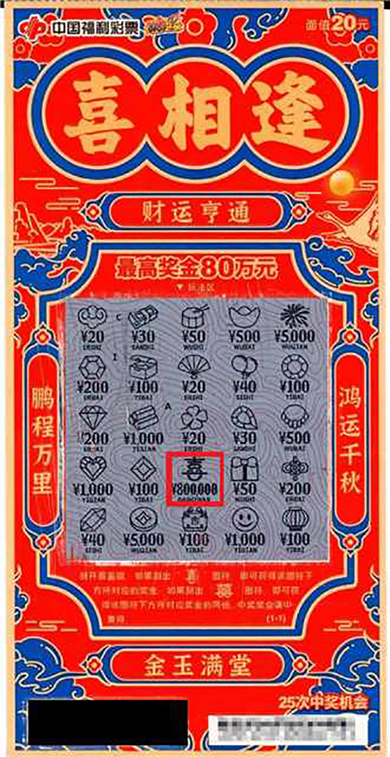 当刮到第三张彩票的时候,他看见“喜”字底下有好几个0,完全刮开后,发现自己中了头奖,他内心一阵激动,但又怕其他人察觉,便迅速冷静下来,继续刮完剩余的彩票。