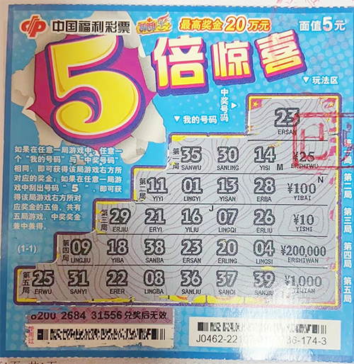 “平时我们就喜欢一起买刮刮乐刮着玩,也中过一些小奖。”小李说到,当天她和男友一人刮了两张,准备比比看谁中奖金额多。没想到她刮出了第一张,直接就中出了最高奖。“我习惯先刮数字再刮金额,先看到23号和中奖号码一样,结果一刮金额这么多个0!”再三确认后,他们才意识到,真的中了20万头奖。