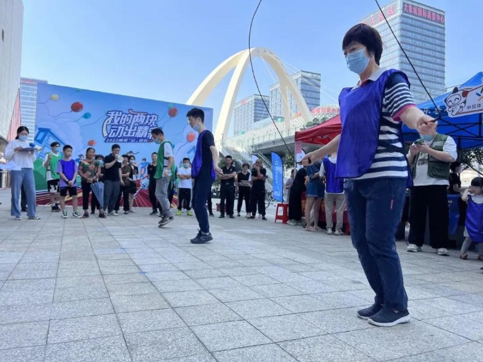 “没事,时间还有,别着急!”在加油鼓劲声中,率先开赛的是一分钟跳绳比赛,只见选手们手中的绳子快速翻飞……现场气氛欢快而热闹。