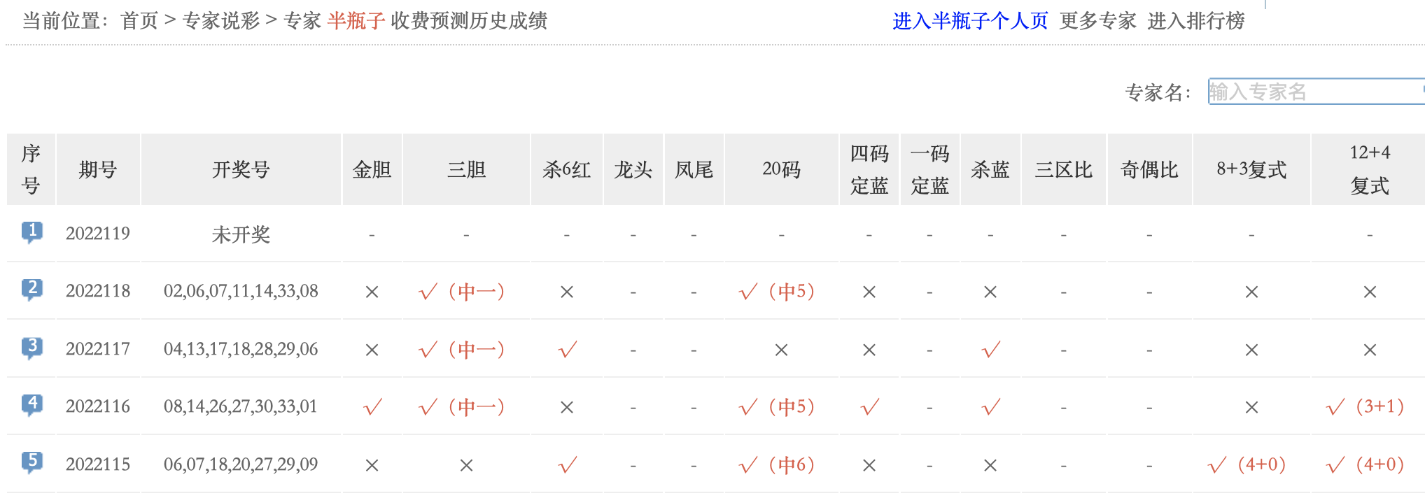 半瓶子、财气横益等专家命中5红。