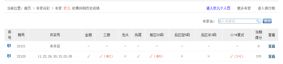 玖儿、乐彩乐彩等专家大底命中5+1。