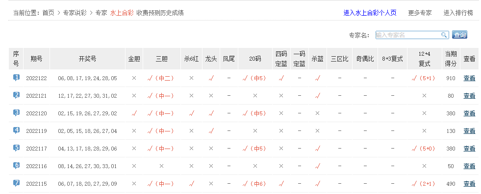 水上合彩、琴冥、东方太阳、不会改变、暖神等专家中5红1蓝。
