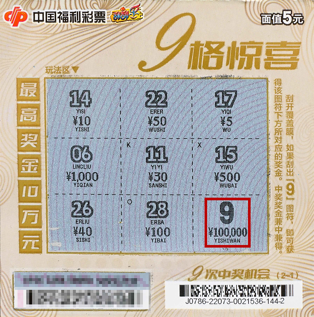 首次刮“9格惊喜”,幸运与头奖撞个满怀