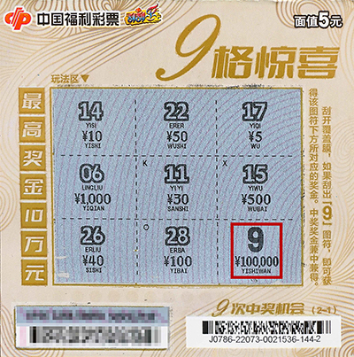 “‘9格惊喜’真能带来惊喜,第一次刮就中了头奖10万元,这也太幸运了吧!”小夏滔滔不绝地说,喜悦之情溢于言表。