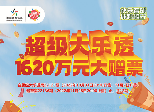 本次活动自超级大乐透第22125期(2022年10月31日20:10开售,11月2日开奖)起至第22136期(2022年11月28日20:00止售)止,共12期。
