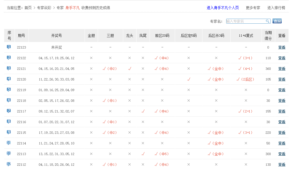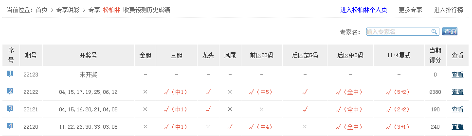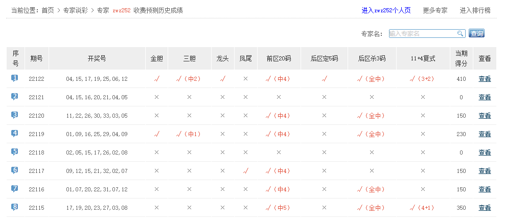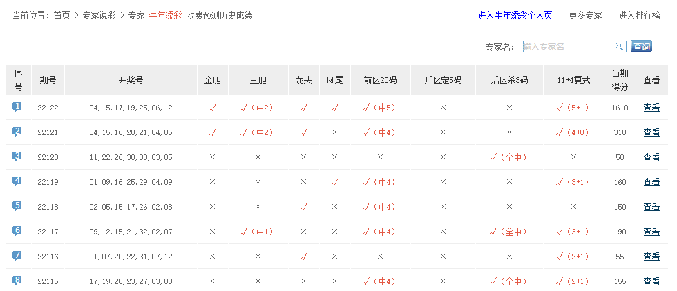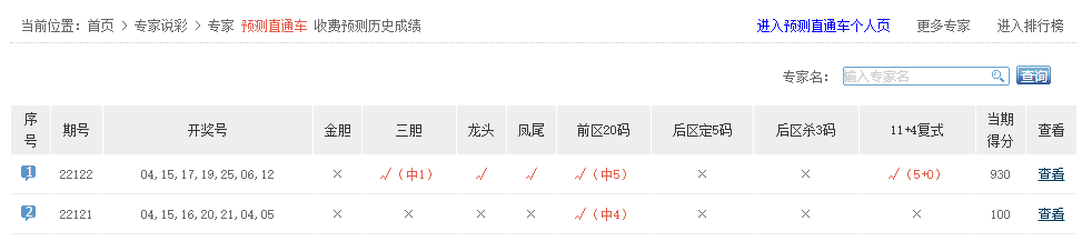 预测直通车、巫师看盘、大奖领航等专家命中5+0。