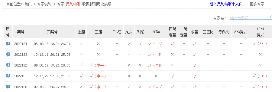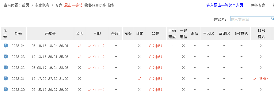 暴击一等奖、精彩人生009、牛年添彩、娱乐至上515、意志坚定、彩经助手、韩非子等专家命中5红。