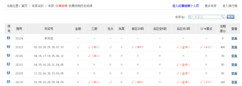 纵横驰骋、神照、中国力量等专家大底命中5+1。