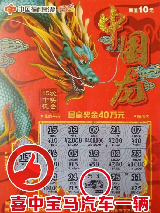 来自北辰区的00后购彩者陈先生,是福利彩票的忠实拥趸,每周都会固定买一些,即便购彩金额都不大,但也是为福利事业和公益事业做的贡献。前几天,小陈和朋友们一起聚餐聊天,小酌之后便来到了附近一家福彩销售场所,恰好看到了“买中国龙 赢宝马车”的活动海报,听到场所负责人说活动即将结束,还有一辆宝马汽车没有刮出来之后,近期正在考虑买车的小陈便果断买了一本“中国龙”刮刮乐。