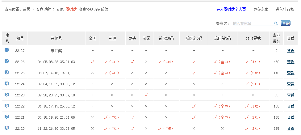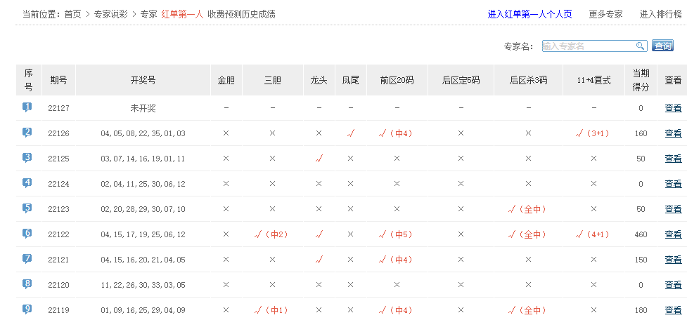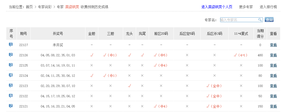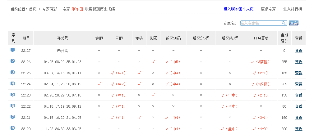 英姿飒爽、阿星推荐、海蓝星、福彩师、野马318、五毒不全、阳光金照、皖北慧姐等专家大底命中5+1。