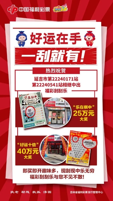 近日,吉林省福彩好运连连,10月10日,延吉市第22240171号福彩销售站才刚刚中出“乐在棋中”头奖25万元,10月28日,吉林省延边朝鲜族自治州安图县松江镇金色家园小区门市第22240541号福彩销售站又传喜讯!该站幸运彩民钱先生(化姓),购买福彩刮刮乐“好运十倍”,喜中40万元大奖!