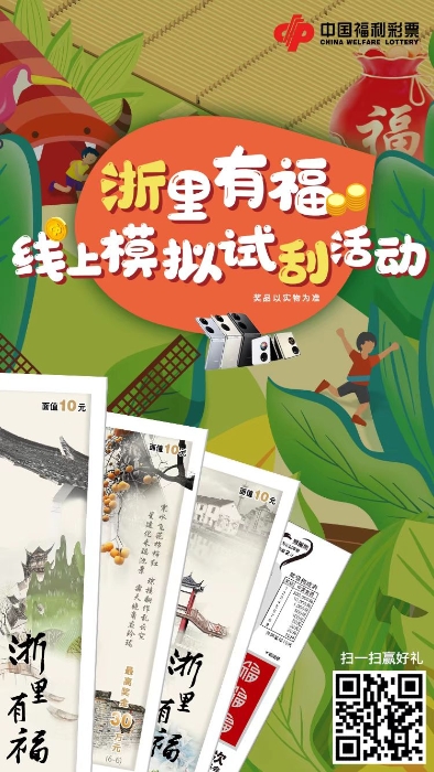 “浙里有福”即开型福利彩票上市啦!为了让大家更好的了解“浙里有福”新票,浙江福彩推出了线上模拟试刮活动,还为大家准备了多重惊喜好礼。