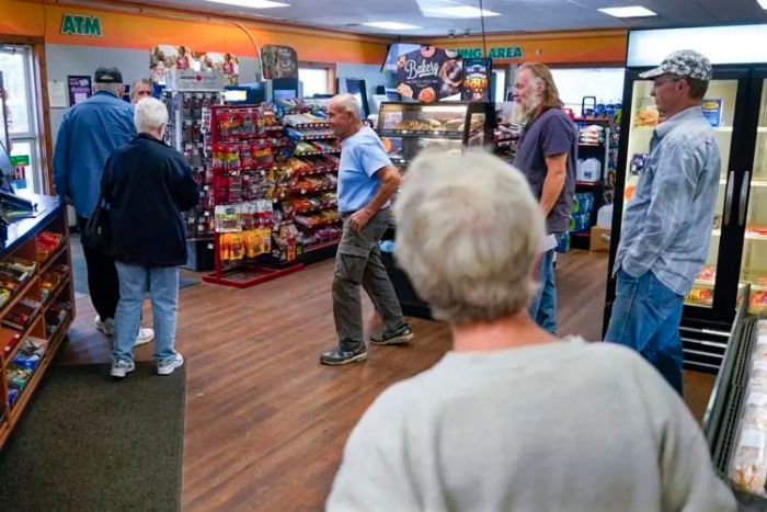 11月7日,人们在宾夕法尼亚州的一家便利店里排队购买强力球