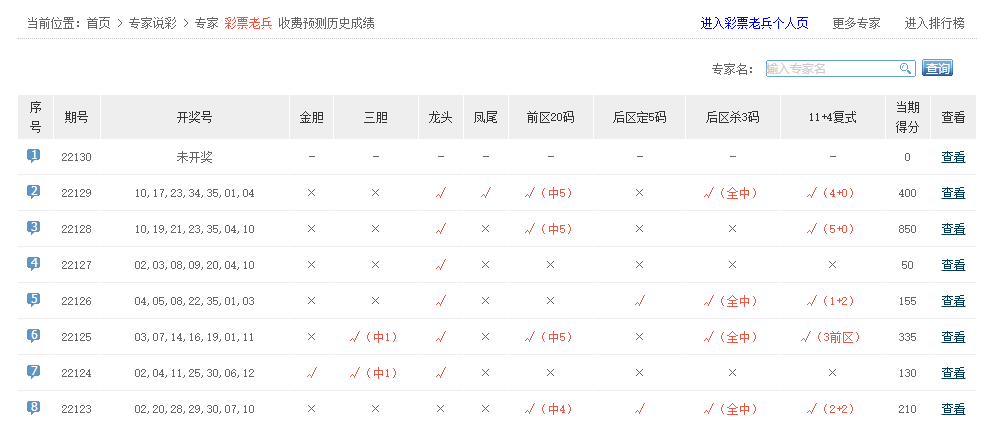 彩票老兵、彩大胆、彩票荣耀、东风胆、阳光金照等专家大底命中5+1。