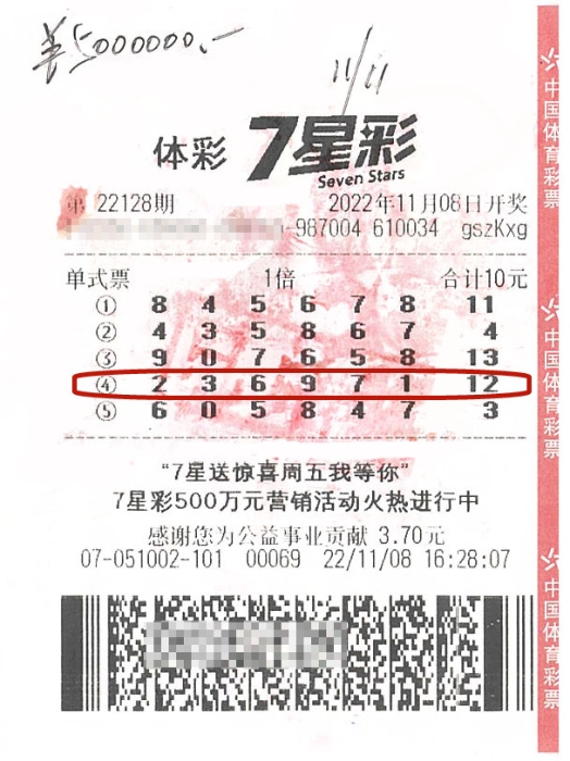 这不,在11月8日第22128期7星彩中,喜中500万元的幸运儿张先生(化名),于11月11日现身省体彩中心领奖。