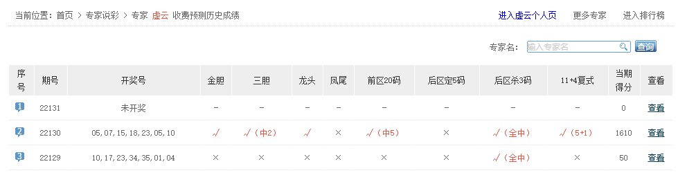 虚云、非常零距离、大地主玩彩、阳明王、啪啪响、彩迷如风、开奖必中、霸天虎妞等专家大底命中5+1。