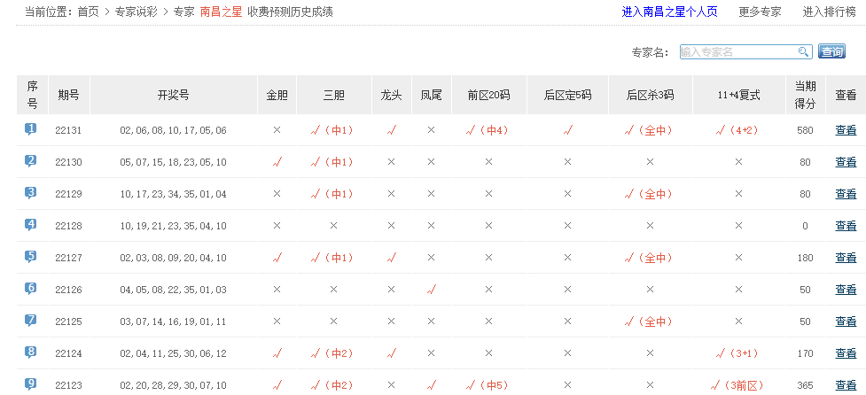 南昌之星、好运双胆、英姿飒爽、皖北慧姐、彩票皇帝、葫芦小金刚、易乾坤命中4+2。