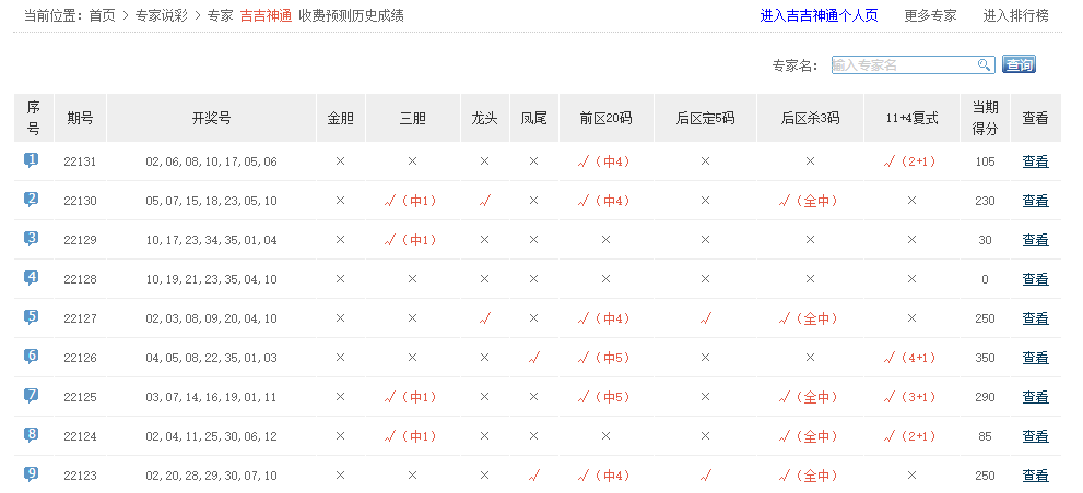 吉吉神通、才一亿、东北宇哥、东风胆、南方彩兄、牛气横通、阳明王、破晓晨星、彩达人等专家大底命中4+1。