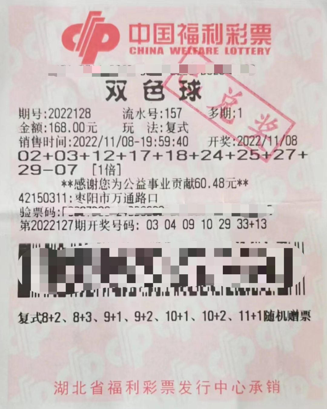 2022年11月9日上午,90后王先生(化姓)携妻子一同出现在襄阳福彩管理站兑奖处。