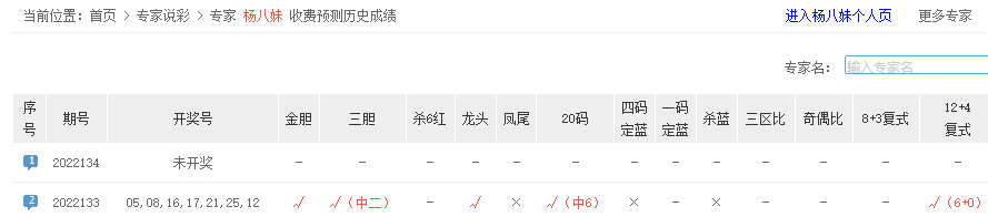 杨八妹12+4命中6+0;渐冻彩迷、数字控111、争第一、欢声和笑语、火狐狸看彩、满山红、每天出彩等专家中二等奖。